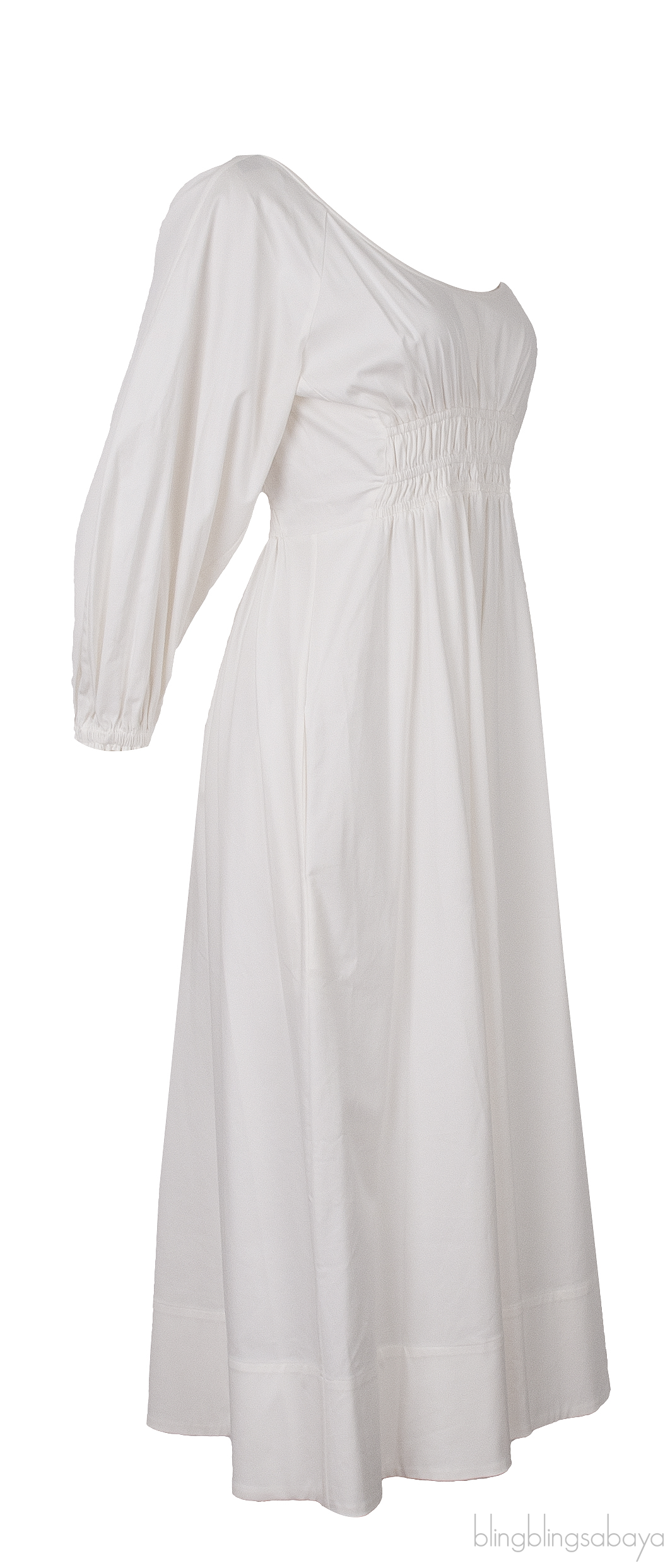 White Cotton Ruched Waist Midi Dress from ALEXIS!