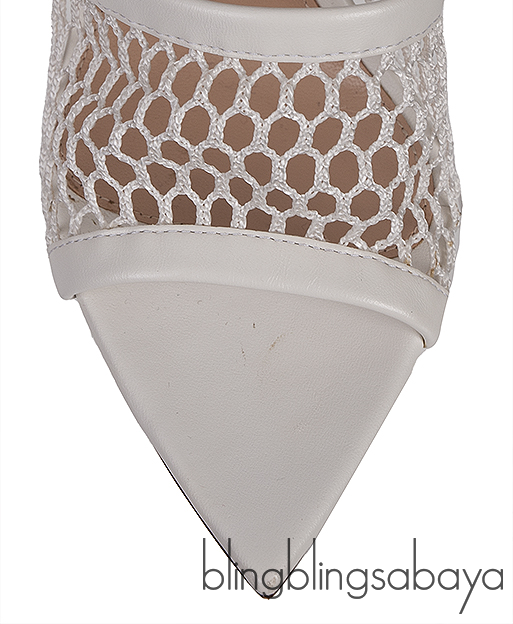 White Leather Trimmed Fishnet Mules