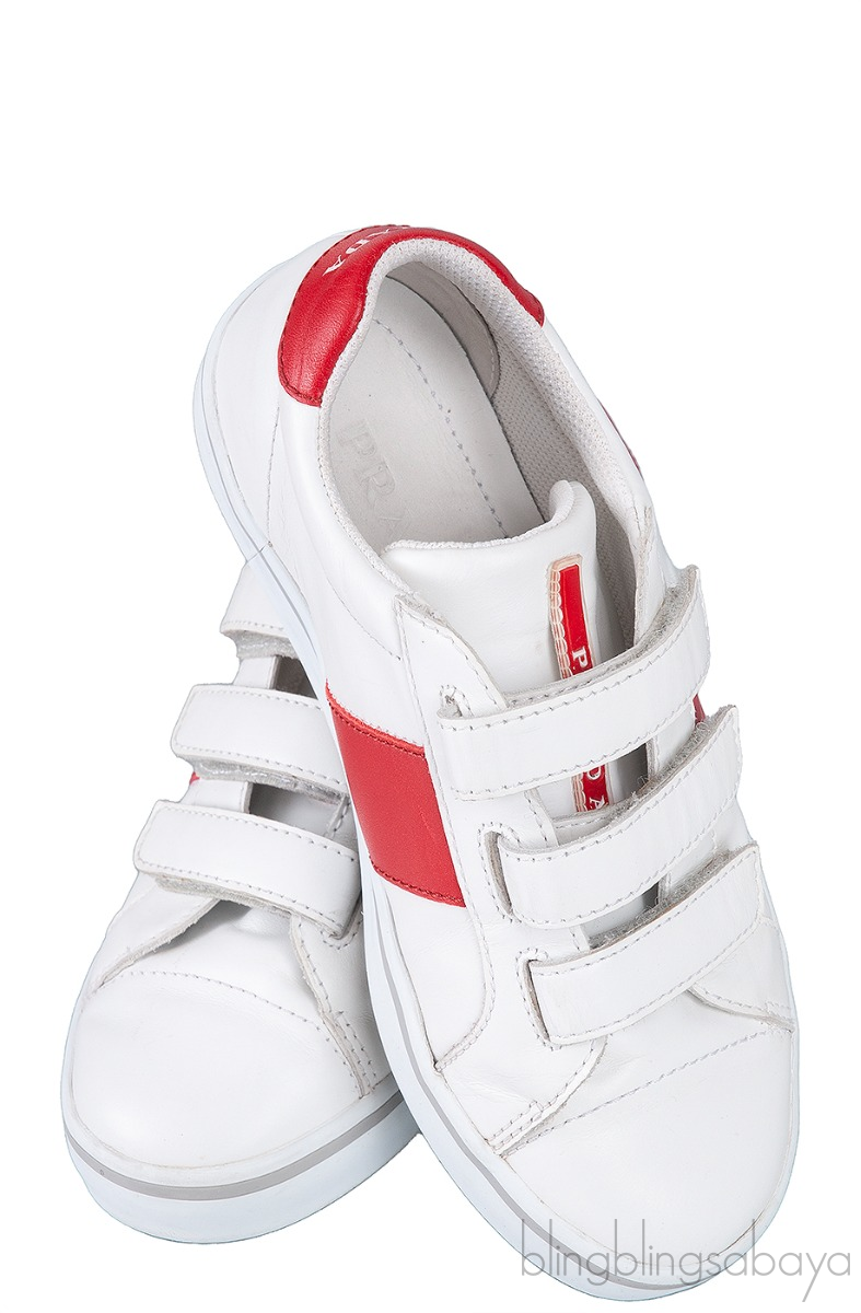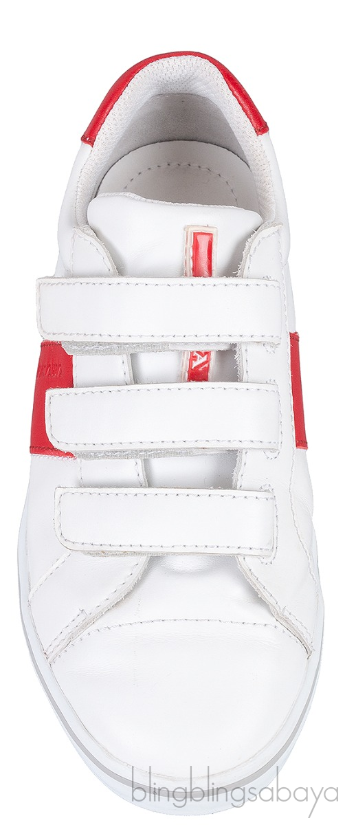 White & Red Velcro Strap Kids Sneaker from Prada!