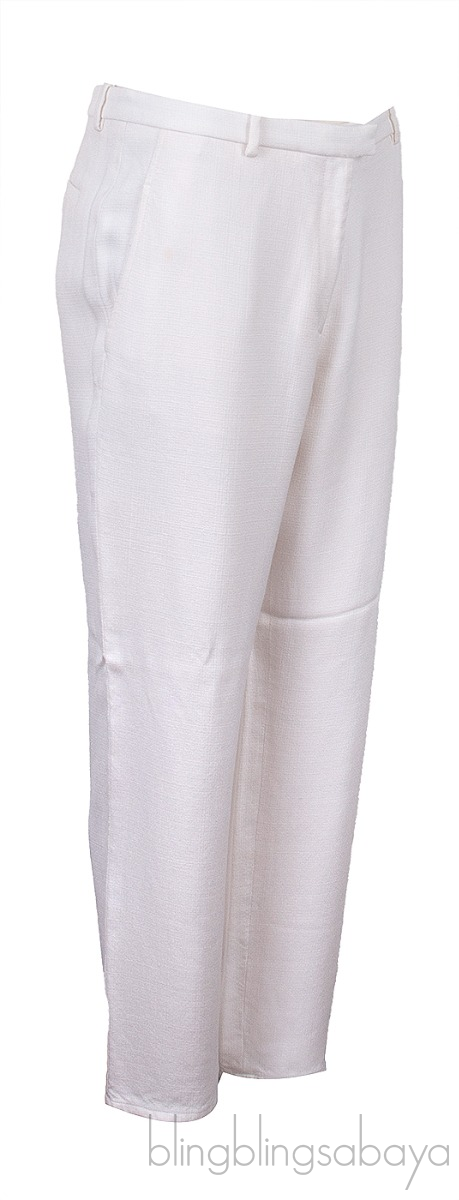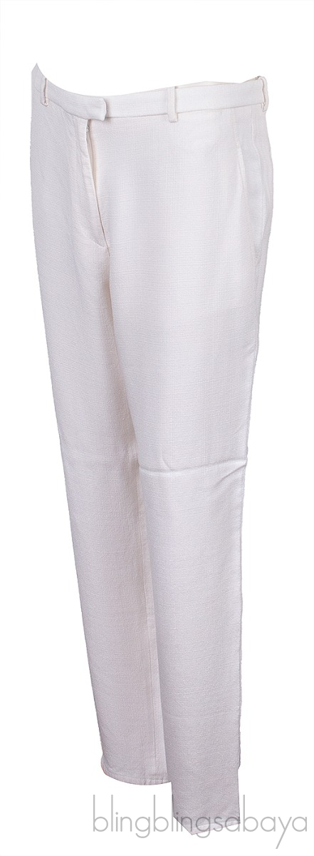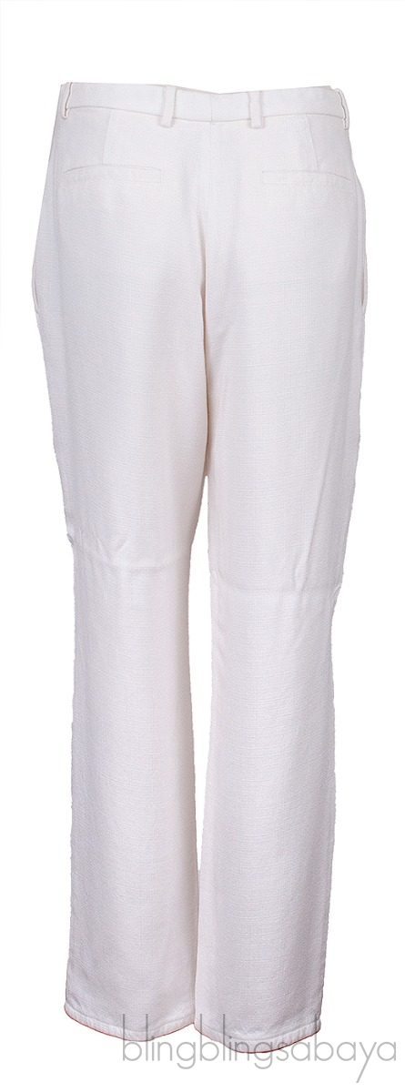 This White Viscose Trouser from Roberto Cavalli is crafted from 100% Viscose fabric in white hue. This trouser features hook and zip fastening at front, belt loops at waistline, side pockets and faux wel pocket at rear.