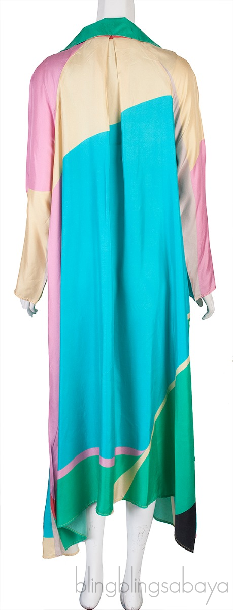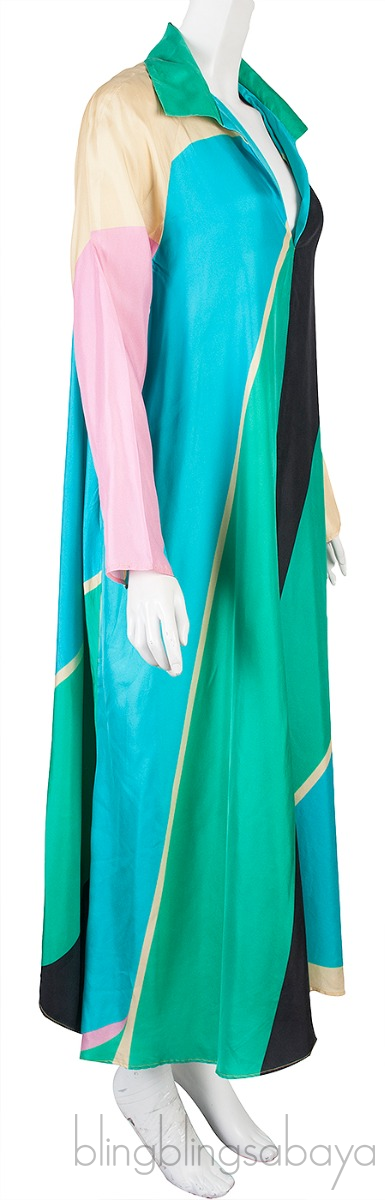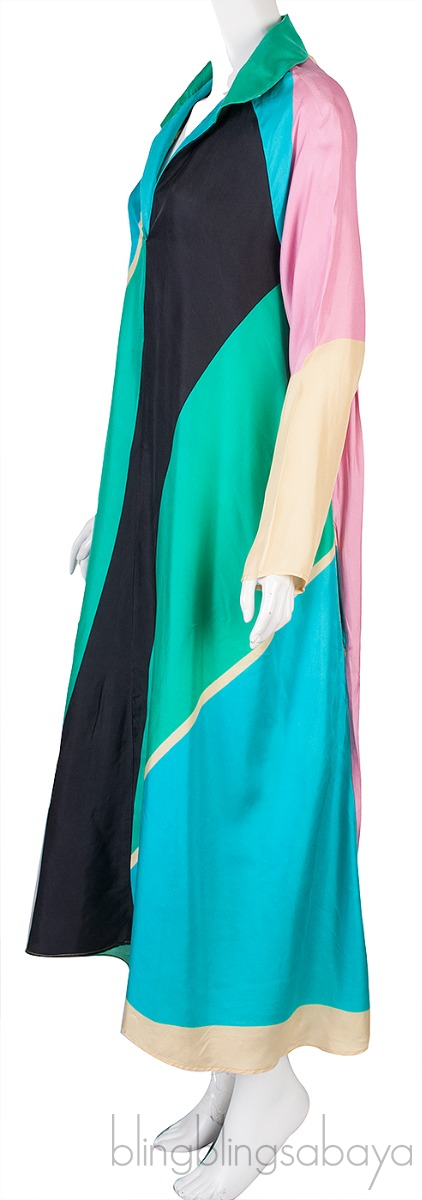 This Winifred Palm Springs Dress from Louisa Parris is crafted from 100% Silk Fabric. This dress features a graphic shapes design in vibrant colors in relaxed or loose fitting style, classic collar, long sleeves, v-neckline and side pockets.