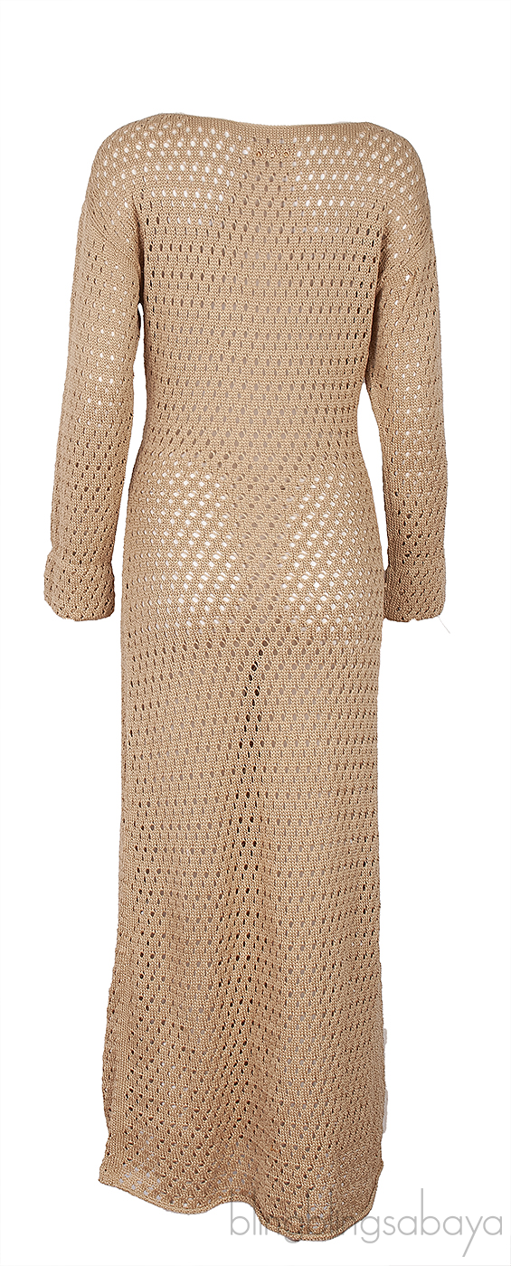 This Winona Open-Knit Pima Cotton Dress from Savannah Morrow is crafted from 100% Pima cotton in brown hue featuring v-neckline, open-knit fabric, long sleeves, slips on and mid-length hem.
