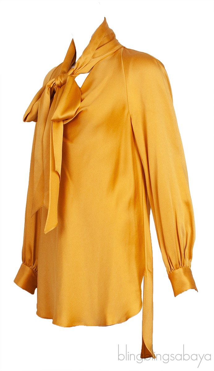 Yellow Gold Long Back Tie-neck Shirt from Oscar dela Renta!