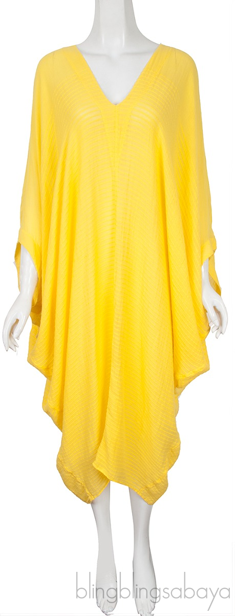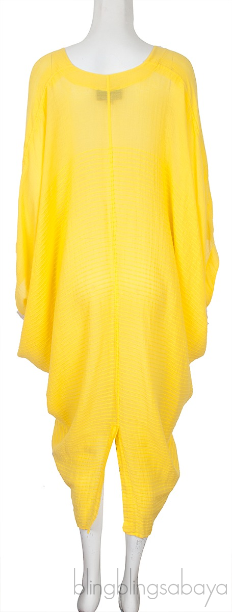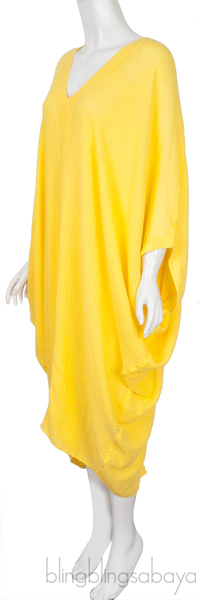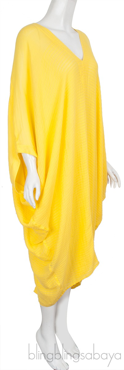 This Yellow Plain Kaftan Dress from Su is made of 100% Cotton in plain textured yellow fabric featuring an oversized design,v-necline, draped sleeves and slit at the back.