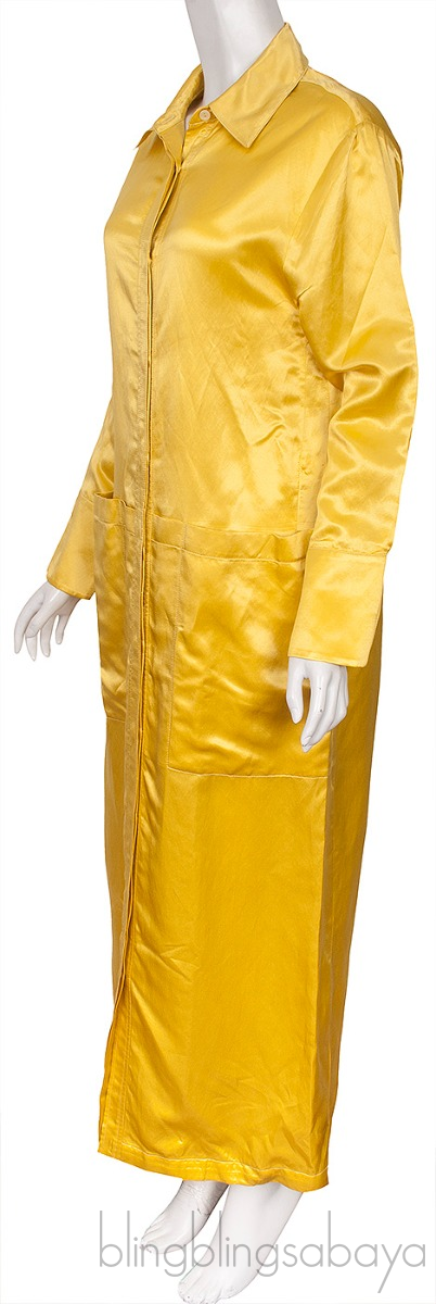 This Yellow Satin Dress Coat from Jil Sander is crafted from silk satin yellow fabric featurng a medium collar, extended button-fastening cuffs, two patch pockets at front, single vent at back and Concealed button fastenings at front and back slit.
