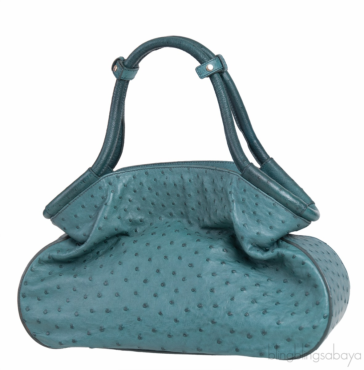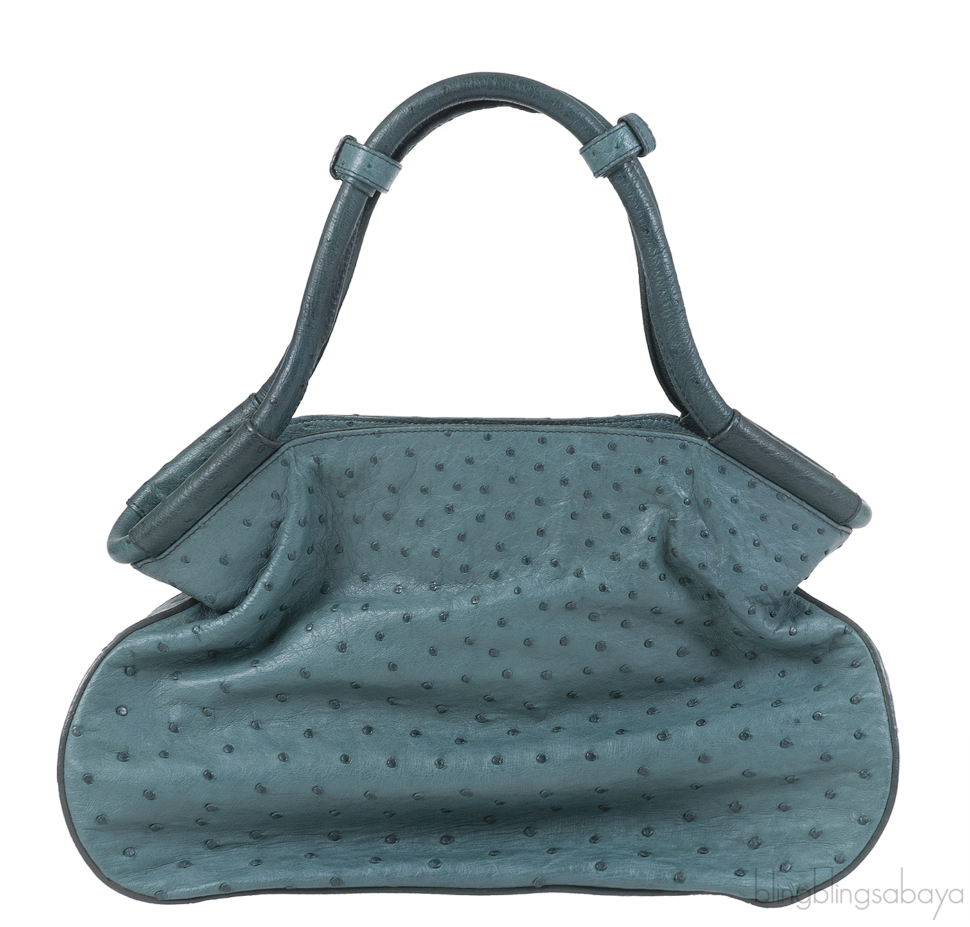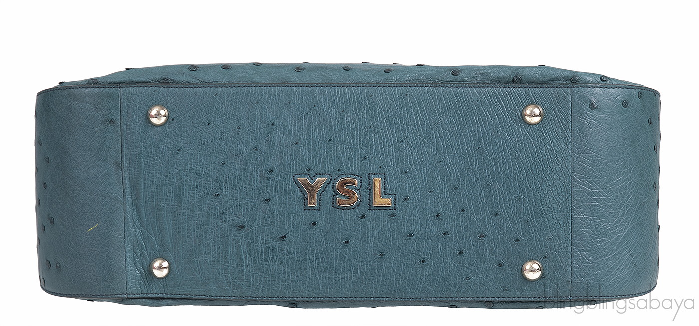 Yves Saint Laurent Green Ostrich Top Handle Bag