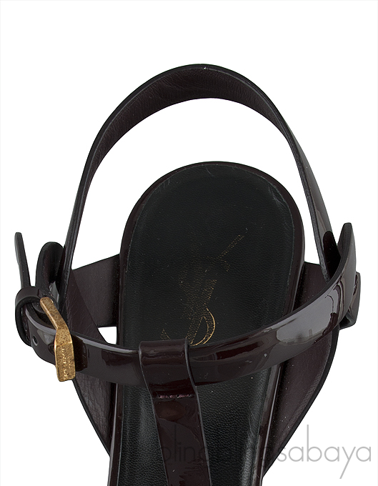 Yves Saint Laurent Tribute Burgundy Patent Sandals