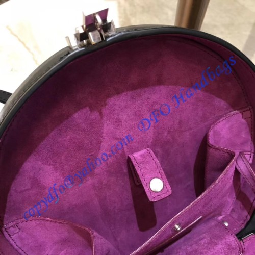 The hatbox comes with full metal legs and it is made entirely of calfskin. You can wear it cross-body or over a shoulder and you will be able to use a great-looking strap with a massive drop of 54 centimeters. The lining is present in suede and it feels elegant and expensive. The metal hardware comes in oxidized nickel finish, it looks stunning. We liked the connection between the metal and the hatbox, so shall you.